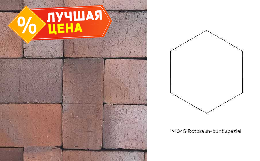 Клинкерная брусчатка Muhr №04S Rotbraun-bunt spezial, гексагон 200x20 мм