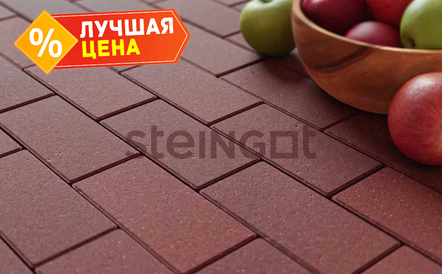 Плитка тротуарная Steingot Моно, Прямоугольник, фаска 1,5x1,5, темно-красный, 200x100x40 мм