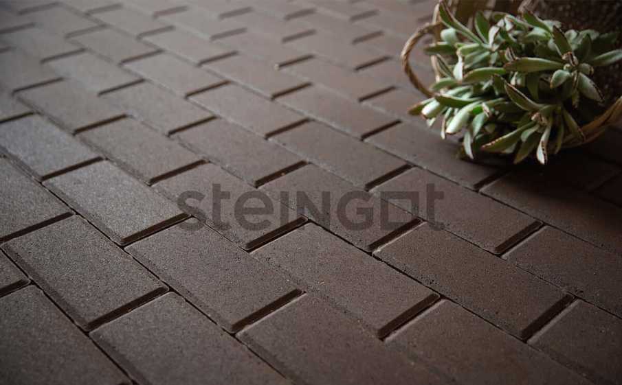 Плитка тротуарная Steingot Моно, Прямоугольник, фаска 5x5, темно-коричневый, 200x100x60 мм